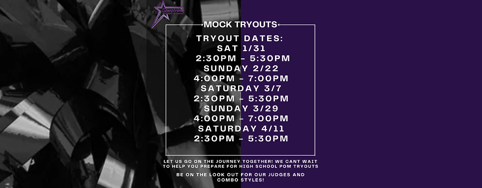 These 3 hour "Mock" auditions are designed to give dancers a feel for what the high school audition process will be like at a quicker pace. These dancers will learn combinations and "Audition" in front of former and current Colorado high school coaches where they will receive feedback from each coach to see what they need to do in order to continue their tryout prep journey.